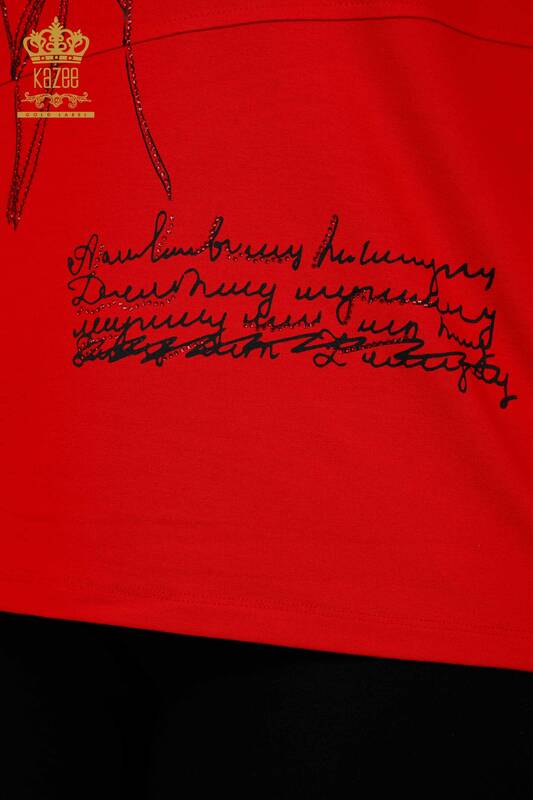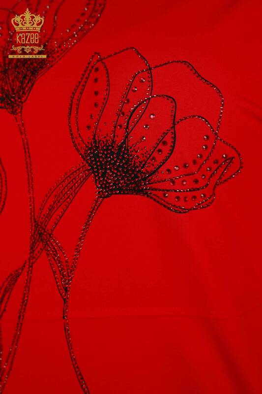 Camicetta da donna all'ingrosso motivo floreale pietra ricamata rossa - 79059 | KAZEE
