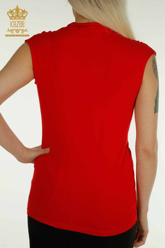 Camicetta da donna all'ingrosso Zero Sleeve Logo Rosso - 79312 | KAZEE