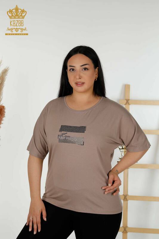 Vendita all'ingrosso Camicetta da donna manica corta visone ricamato in pietra - 79349 | KAZEE