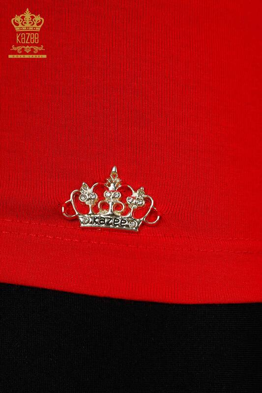 Camicetta da donna all'ingrosso senza maniche Basic Logo rosso - 79262 | KAZEE