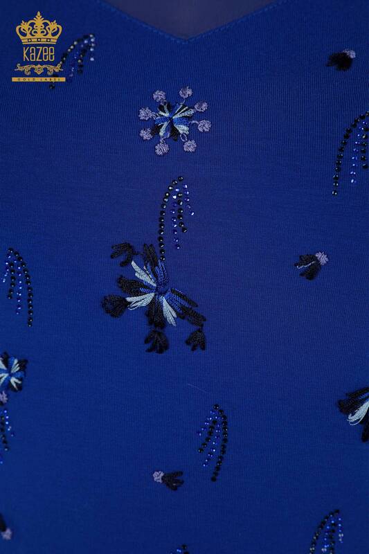 Camicetta da donna all'ingrosso Tulle Motivo floreale dettagliato Pietra ricamata Saks - 79133 | KAZEE