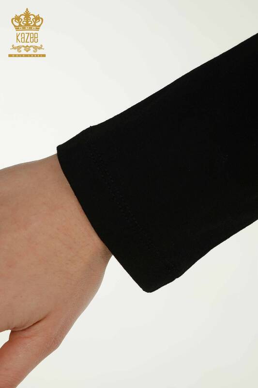 Venta al por mayor Blusa de mujer con bordado de piedra y cuello redondo Negro - 79379 | KAZEE