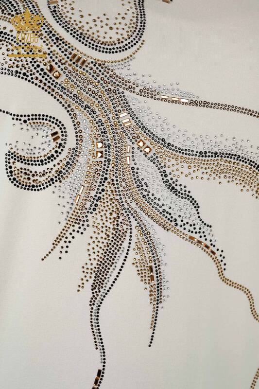 Venta al por mayor Blusa Mujer Manga Corta Estampada Piedra Bordada Dos Bolsillos Cruda - 79294 | kazee