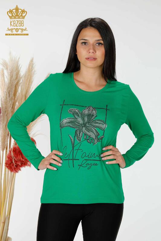 Venta al por mayor Blusa de Mujer Estampado Floral Piedra Bordada Verde - 79014 | kazee