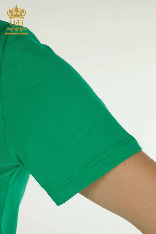 Venta al por mayor Blusa de mujer Manga corta Cuello redondo Verde - 79563 | KAZEE
