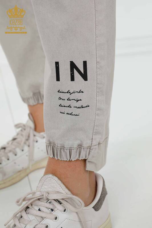 Venta al por mayor Pantalones De Mujer Con Cintura Elástica Corbata Corbata Pierna Letra Detallada Gris - 3500 | kazee