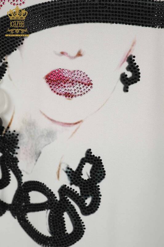 Grossiste Chemisier Femme Imprimé Numérique Pierre Brodée Manches Courtes Ecru - 77756 | KAZEE