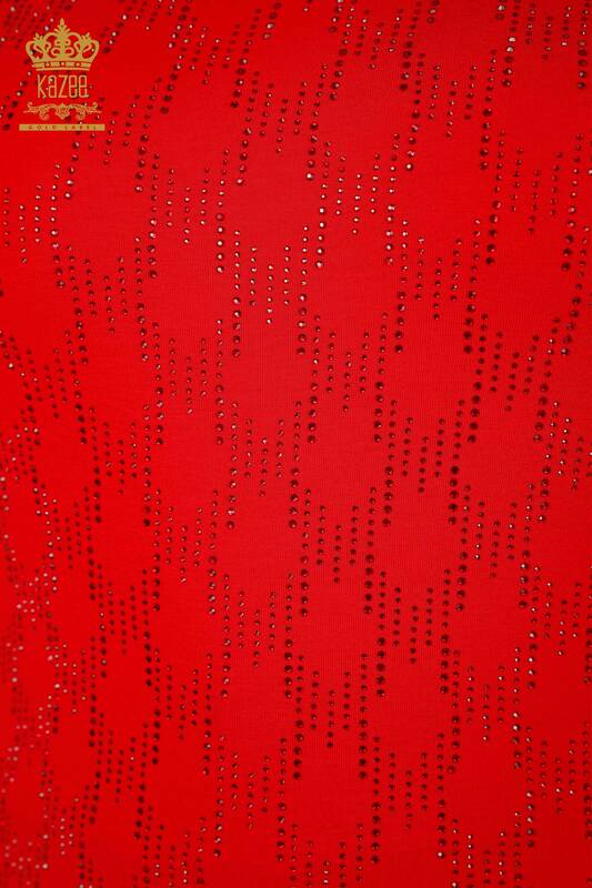 Grossiste Chemisier Femme Col V Pierre Brodée Rouge - 79016 | KAZEE