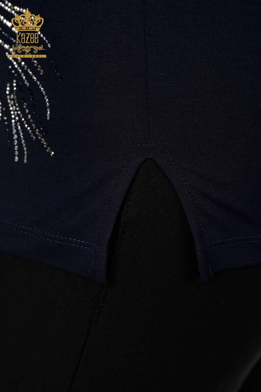 Grossiste Chemisier Femme Motif Feuille Pierre Brodée Bleu Marine - 77970 | KAZEE