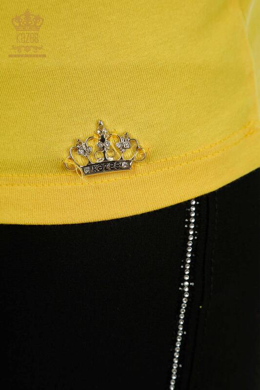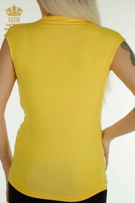 Grossiste Chemisier Femme Zero Sleeve Logo Jaune - 79312 | KAZEE