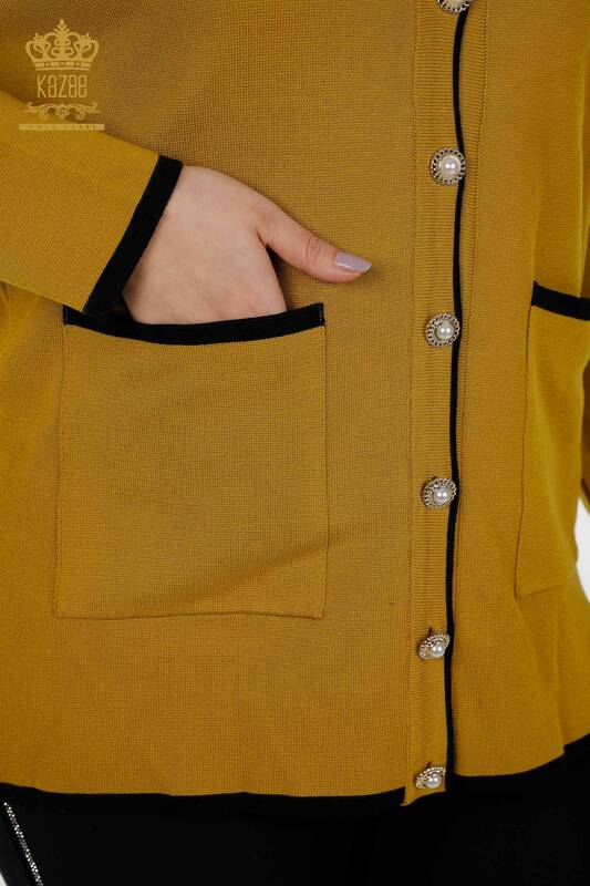 Grossiste Cardigan Femme Poche Boutonnée Moutarde - 30148 | KAZEE