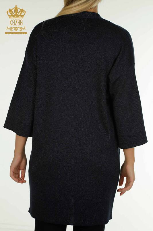 Cardigan pour femmes en gros avec détail de poche scintillant, Bleu marine - 30135 | KAZÉE