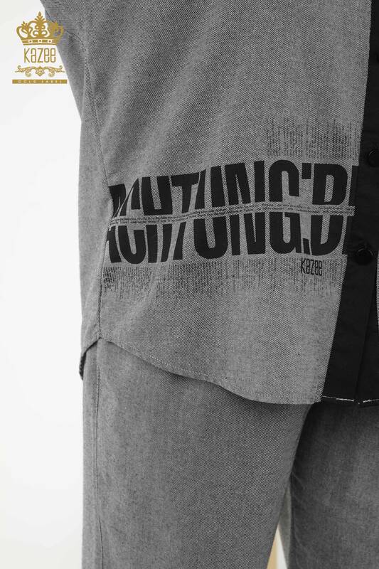 Grossiste Costume Chemise Femme Motif Poche Anthracite - 20332 | KAZEE