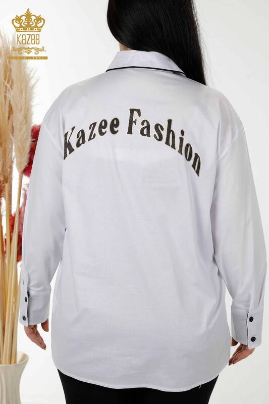 Grossiste Chemise Femme Couleur Transition Texte Détaillé Blanc - 20311 | KAZEE