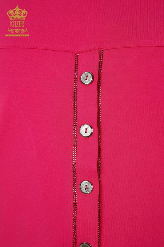 Gros Bouton Chemisier Femme Détaillé Pierre Brodée Manches Courtes Fuchsia - 79297 | KAZEE