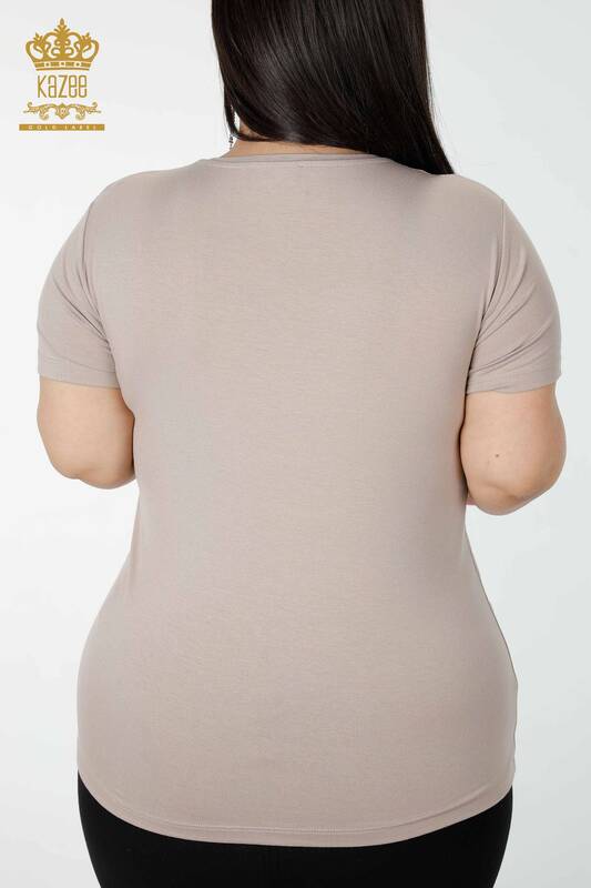 Grossiste Chemisier Femme Motif Floral Pierre de Couleur Brodée Beige - 78924 | KAZEE