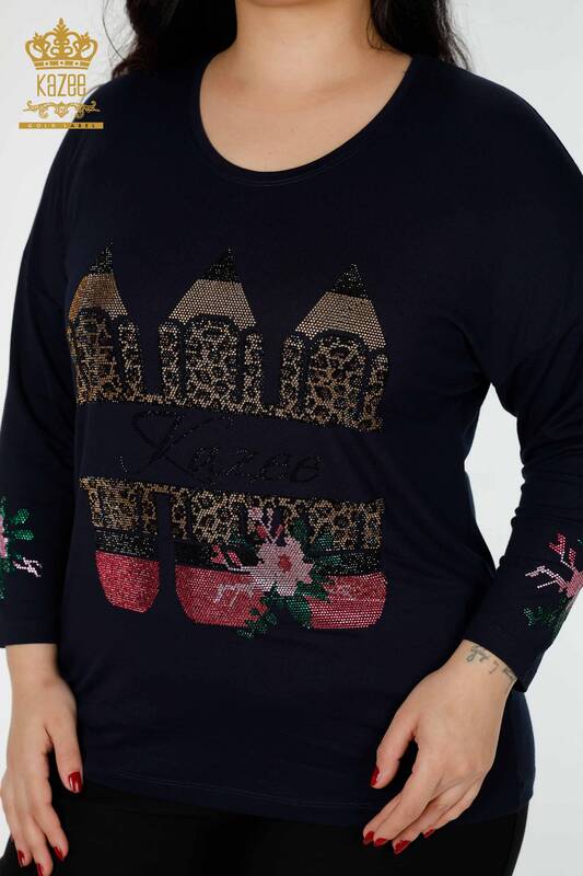 Grossiste Chemisier Femme Motif Pierre de Couleur Brodée Bleu Marine - 77942 | KAZEE