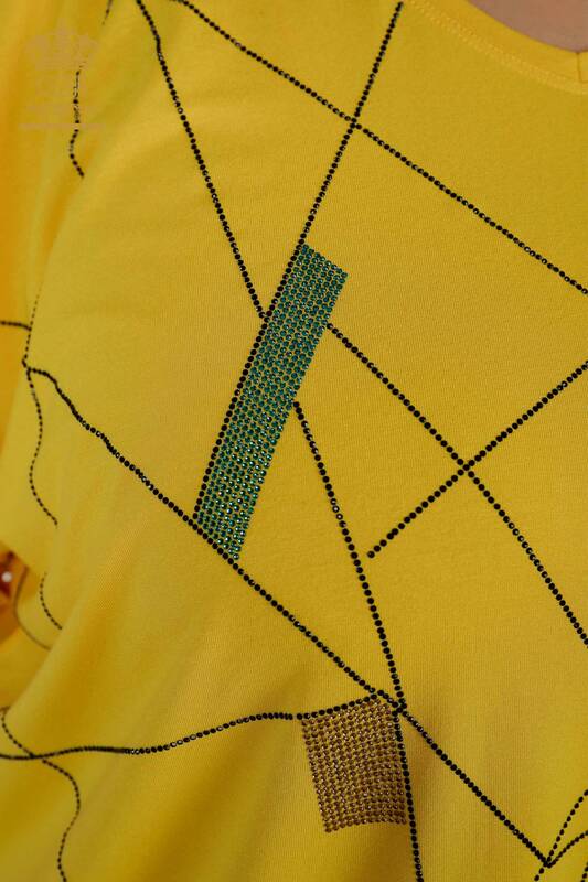 Grossiste Chemisier Femme Col V Pierre Brodée Manches Courtes Jaune - 79320 | KAZEE