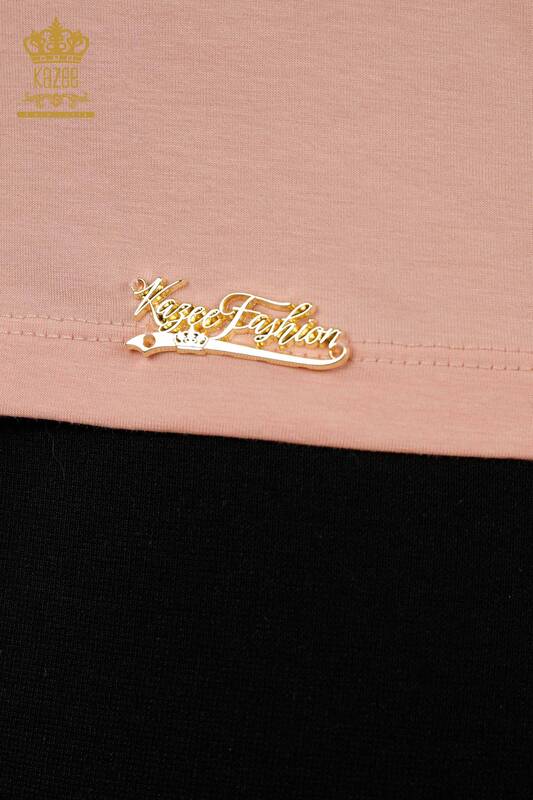 Grossiste Chemisier Femme Col V Manches Courtes Poudre Basique - 79179 | KAZEE