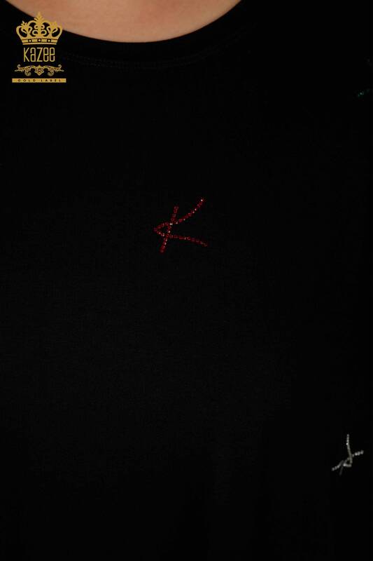en gros Chemisier Femme Col Rond Pierre Brodée Manches Courtes Noir - 79333 | KAZEE