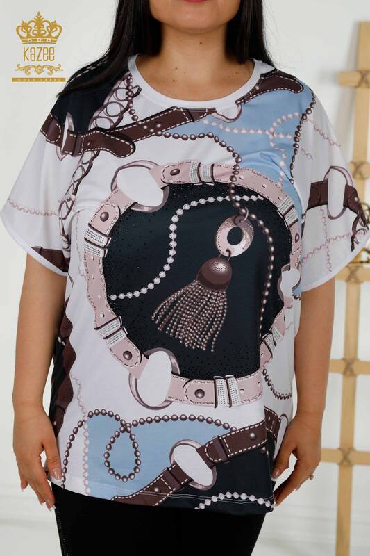 Vente en gros Chemisier Femme Imprimé Numérique Pierre Brodée Manches Courtes - 12104 | KAZEE