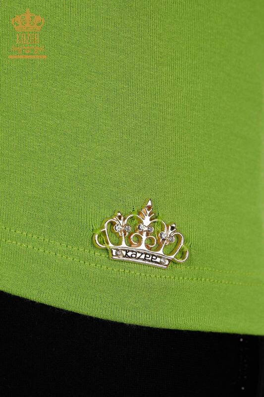 Grossiste Chemisier Femme Manches Courtes Basic Logo Vert Pistache - 79287 | KAZEE
