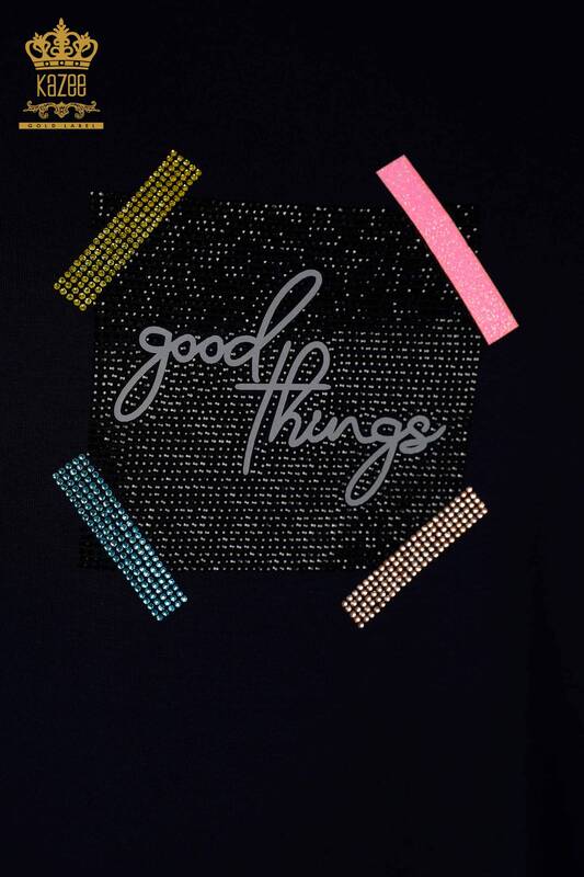 Grossiste Chemisier Femme Pierre Brodée Motifs Manches Courtes Marine - 79323 | KAZEE