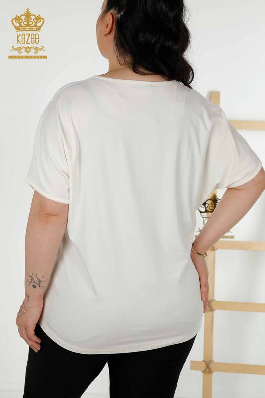 Vente en gros de chemisier pour femmes à manches courtes en pierre brodée d'impression numérique florale - 12091 | KAZEE
