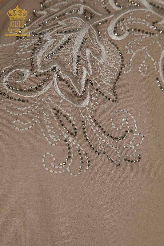 Grossiste Chemisier Femme Motif Feuille Pierre Brodée Vison - 79090 | KAZEE