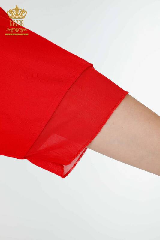 Grossiste Chemisier Femme Motif Floral Tulle Détaillé Pierre Brodée Rouge - 79032 | KAZEE