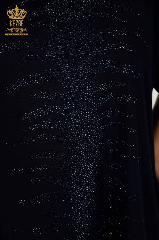 Grossiste Chemisier Femme Pierre Brodée Motifs Manches Courtes Marine - 79321 | KAZEE