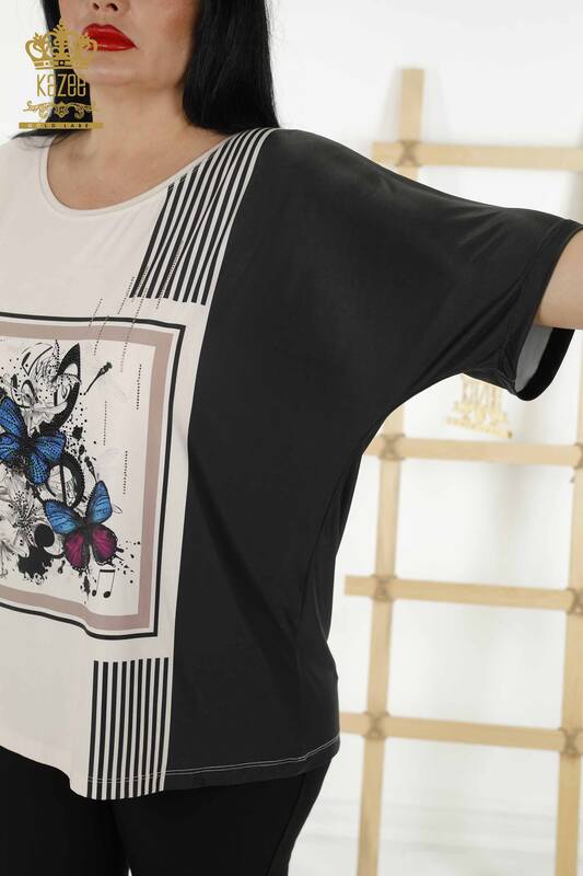 Vente en gros Chemisier Femme Imprimé Numérique Pierre Brodée Manches Courtes Noir - 12039 | KAZEE