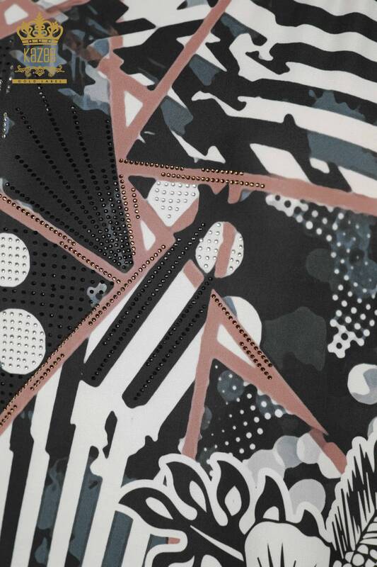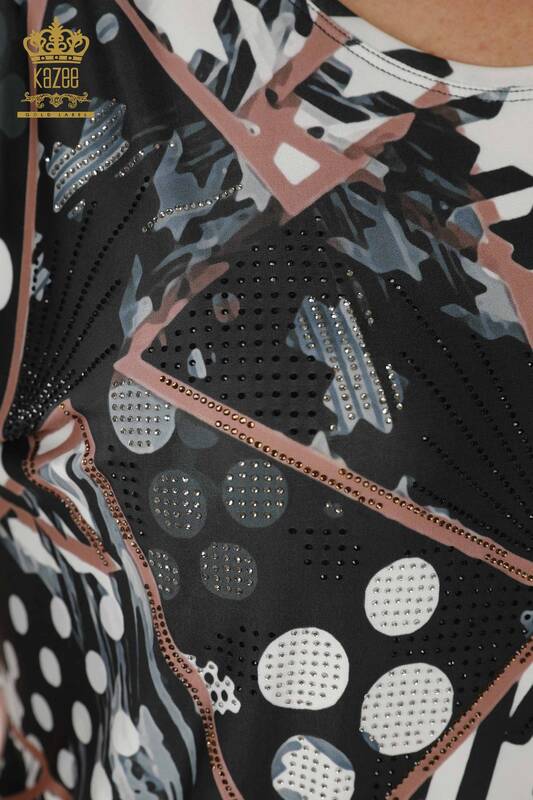 Vente en gros Chemisier Femme Imprimé Numérique Pierre Brodée Manches Courtes Vison - 12052 | KAZEE