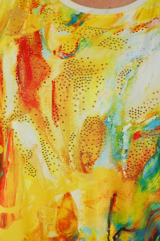 Grossiste Chemisier Femme Pierre Brodée Impression Numérique Jaune - 77000 | KAZEE