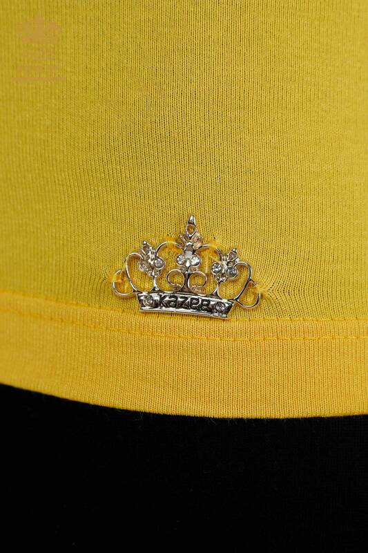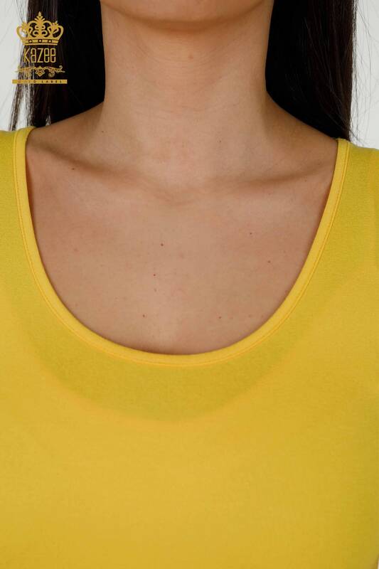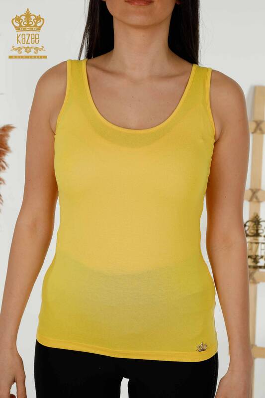Grossiste Chemisier Femme Sans Manches Basic Logo Jaune - 79262 | KAZEE