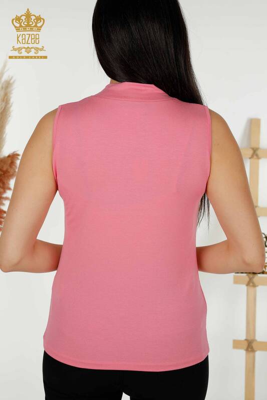 Grossiste Chemisier Femme Zero Sleeve Logo Rose - 79286 | KAZEE