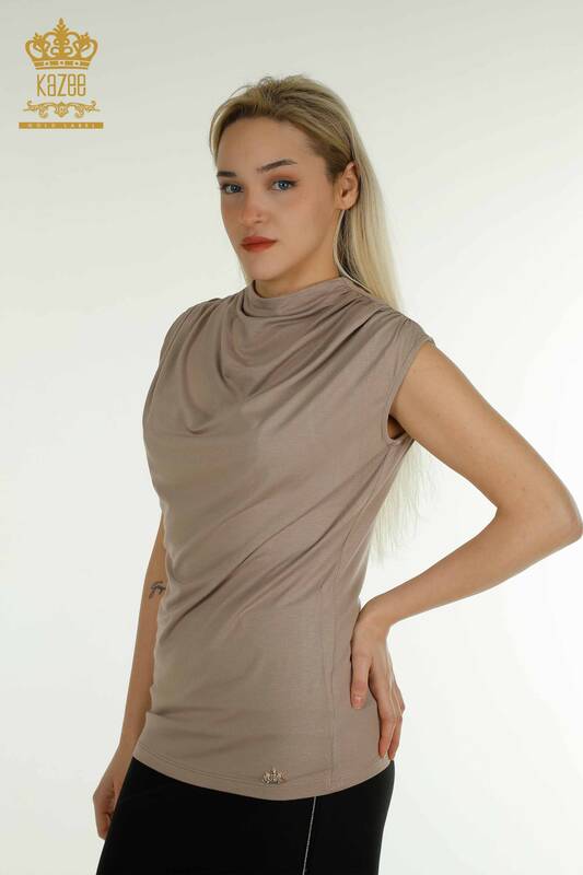Grossiste Chemisier Femme Zero Sleeve Logo Mink - 79312 | KAZEE
