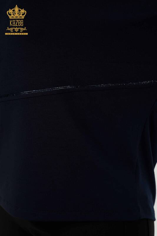 Grossiste Chemisier Femme Tulle Détail Pierre Brodée Motif Floral Bleu Marine - 79051 | KAZEE