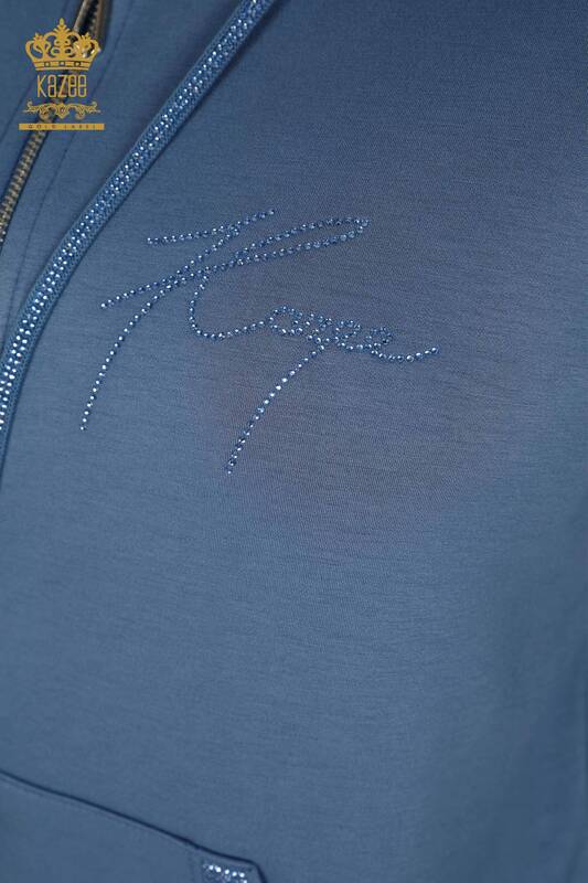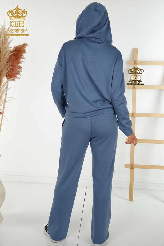 Ensemble de survêtement pour femmes en gros avec poche brodée en pierre et capuche Indigo - 17598 | KAZÉE