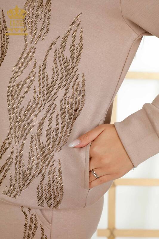 Ensemble de survêtement pour femmes en gros avec poche à capuche brodée de pierre - 17566 | KAZÉE