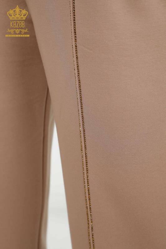 Ensemble de survêtement pour femmes en gros avec poche brodée en pierre et vison à capuche - 17598 | KAZÉE