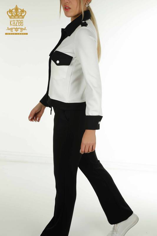 Ensemble De Survêtement Pour Femmes En Gros Bouton Deux Couleurs Détaillé Noir Ecru - 17674 | KAZÉE