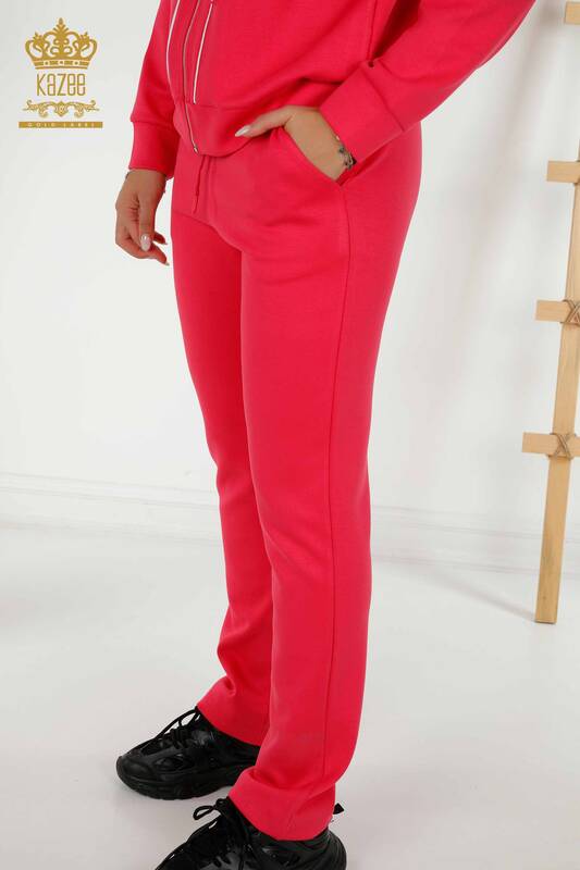 Ensemble de survêtement pour femmes en gros avec deux poches et fermeture éclair à capuche détaillée Fuchsia - 17595 | KAZÉE