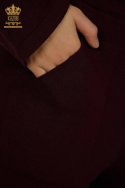 Ensemble de survêtement des femmes en gros, à motifs floraux, zippé avec poches, prune - 16661 | KAZÉE