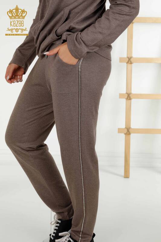 Ensemble de survêtement pour femmes en gros, motif léopard, fermeture éclair, pierre brodée, vison - 16660 | KAZÉE