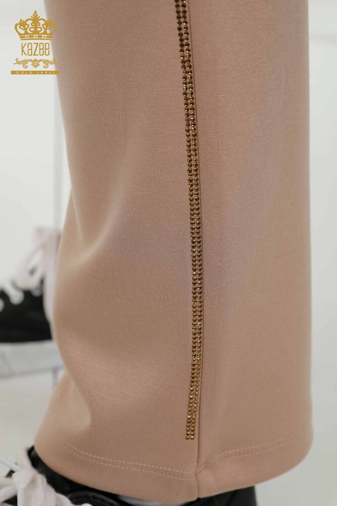 Ensemble de survêtement pour femmes en gros, vison à capuche avec fermeture éclair brodée de pierre - 20415 | KAZÉE