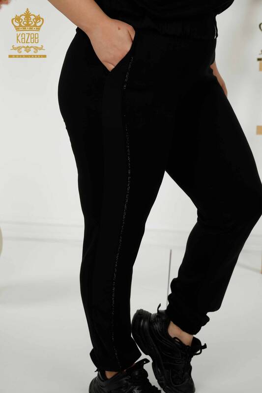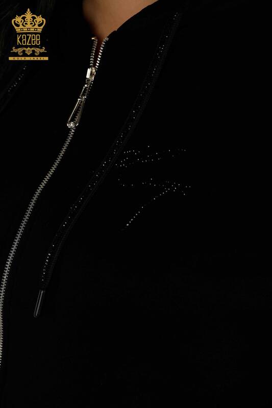 Vente en gros Ensemble de survêtement pour femmes Stone brodé Zippered Hoodie Noir - 20387 | KAZEE