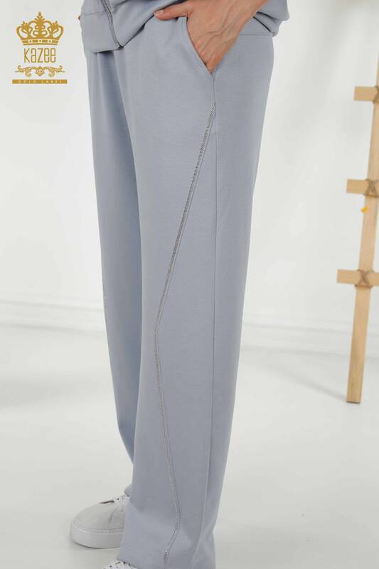 Vente en gros Ensemble de survêtement pour femme avec poche zippée brodée de pierres bleues - 17549 | KAZEE