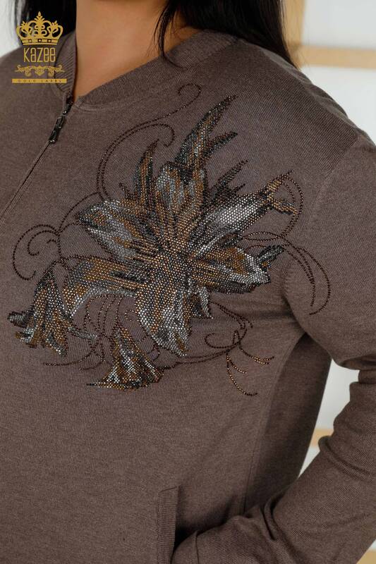 Vente en gros Ensemble de survêtement pour femmes Floral Patterned Pockets Zippered Mink - 16661 | KAZEE