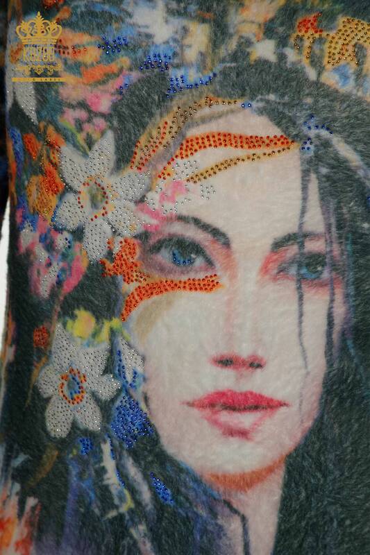 Tricots Angora pour femmes en gros imprimé numérique pierre brodée à manches longues numérique - 40017 | KAZÉE